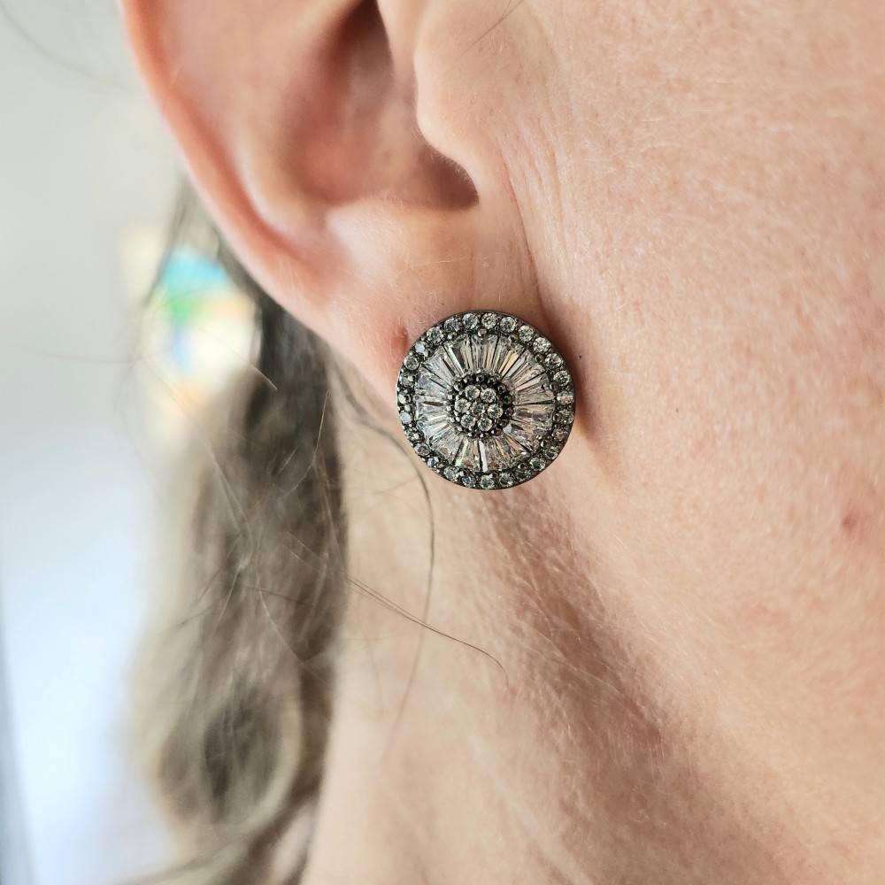 Brinco folheado em ródio negro com zirconias cravejadas. Material antialérgico e garantia de 1 ano. Tamanho 1.1 cm.