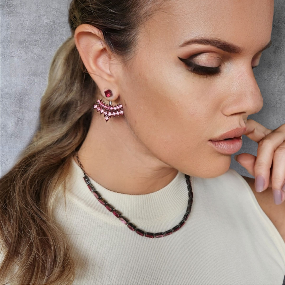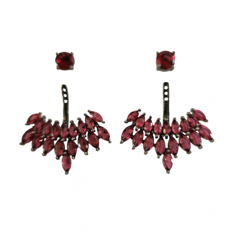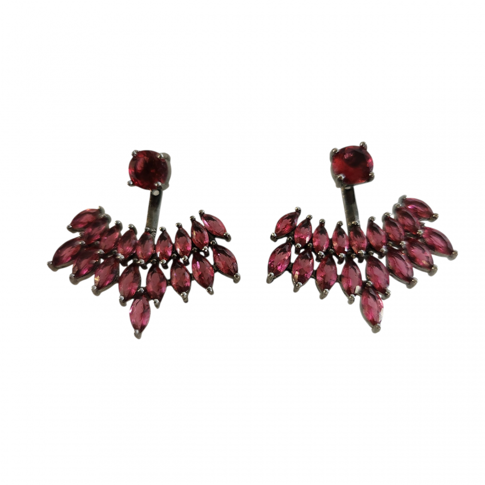 Brinco folheado em ródio negro com zirconias rubi. Material antialérgico e garantia de 1 ano. Tamanho 1.5 cm x 1.5 cm