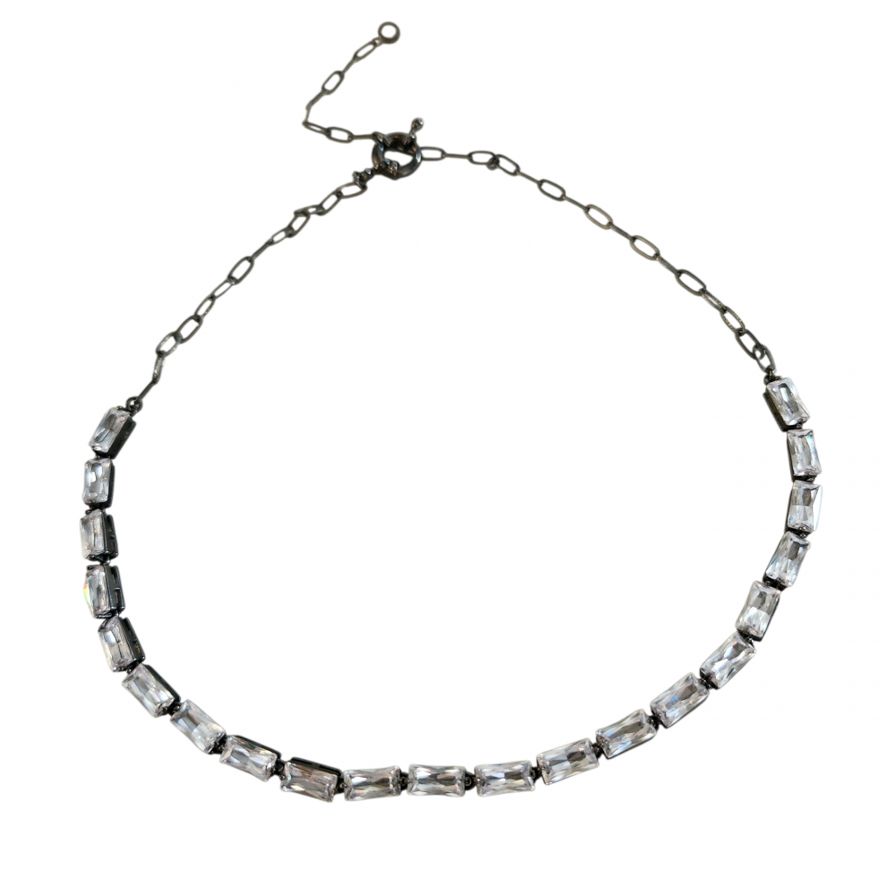 Comprimento 45 cm. Folheado em ródio negro com cristais. Material antialérgico e garantia de 1 ano.