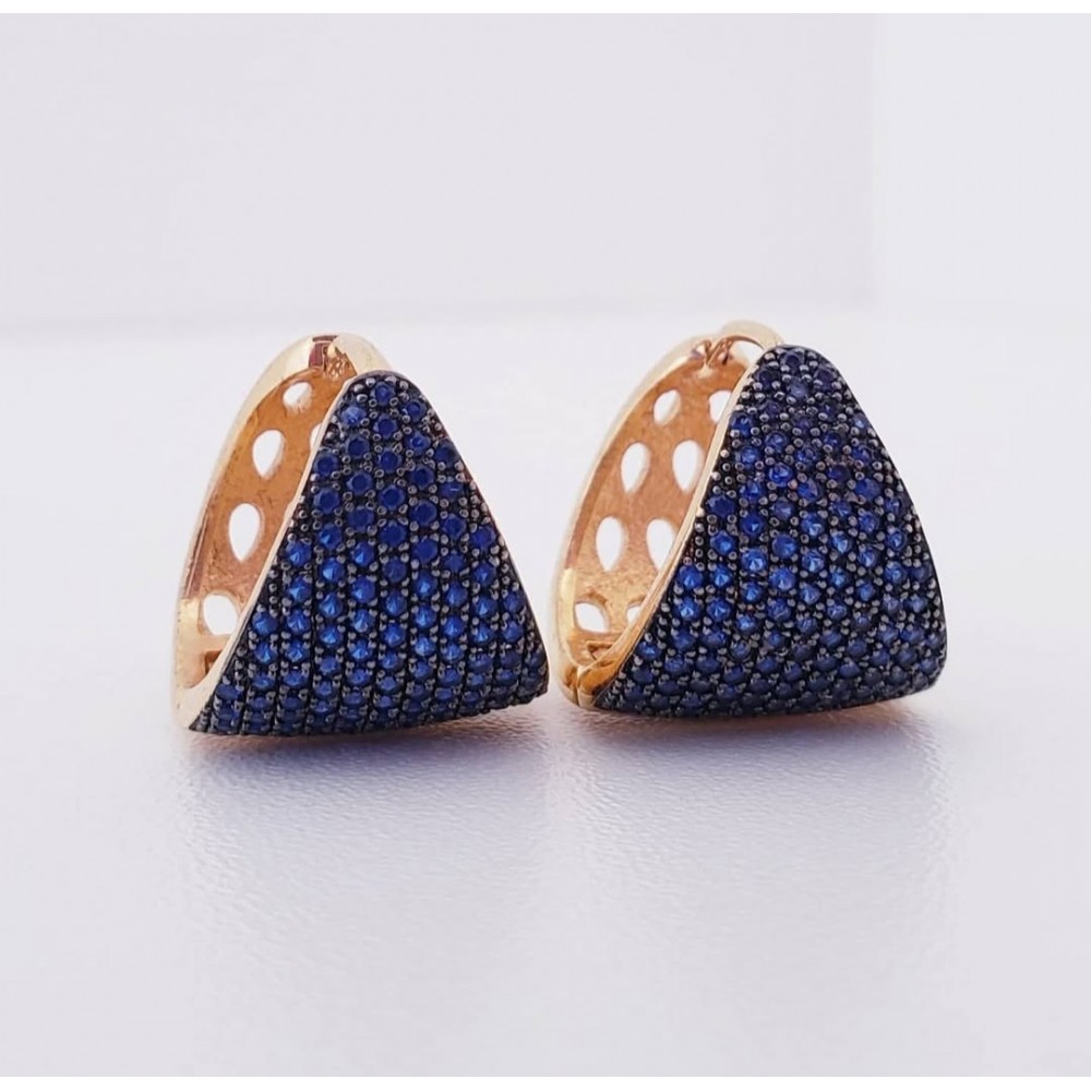 Argola triangular safira cravejadas. Material antialérgico e garantia de 1 ano.